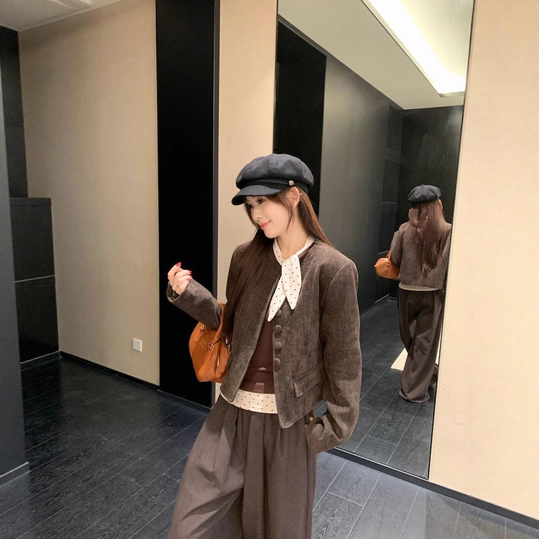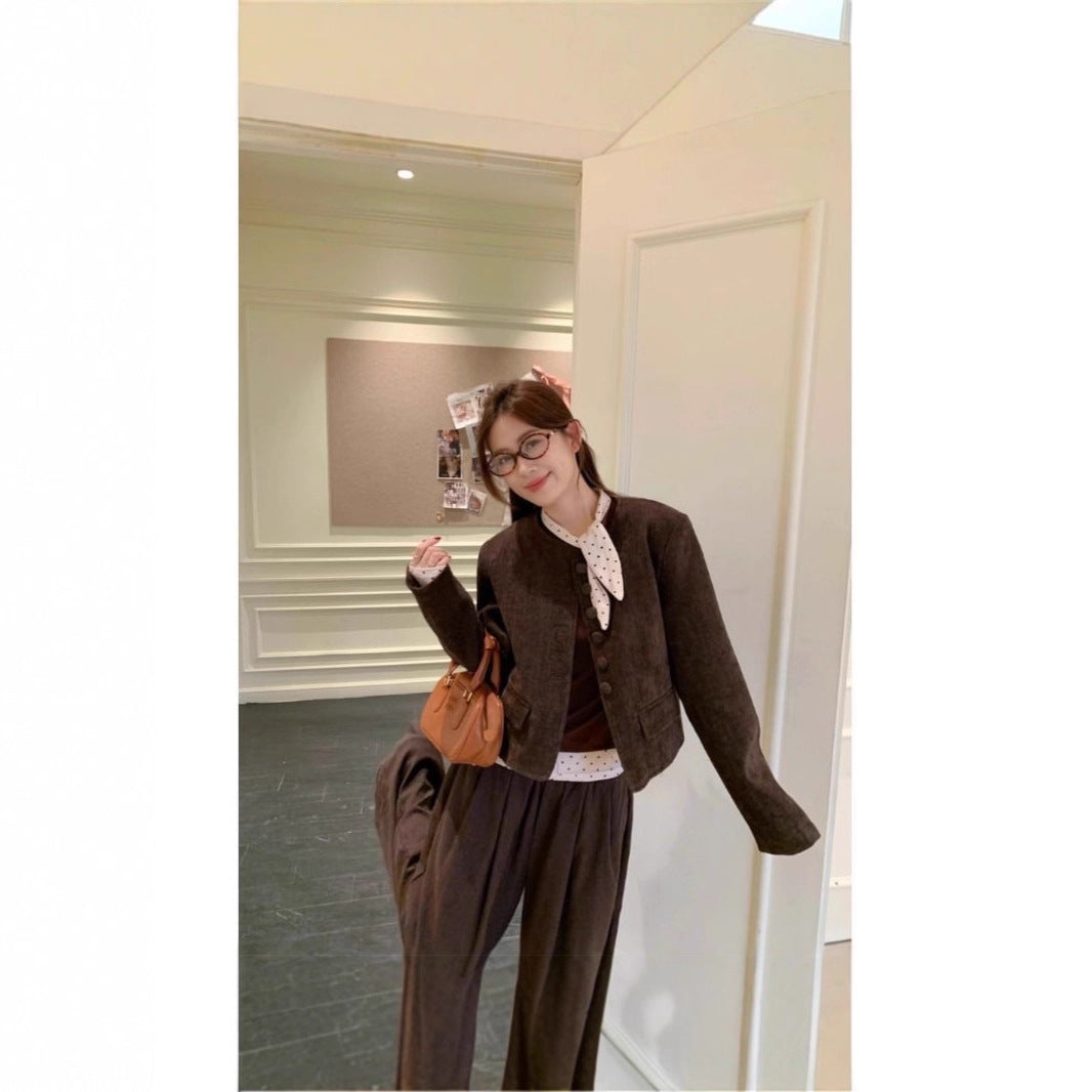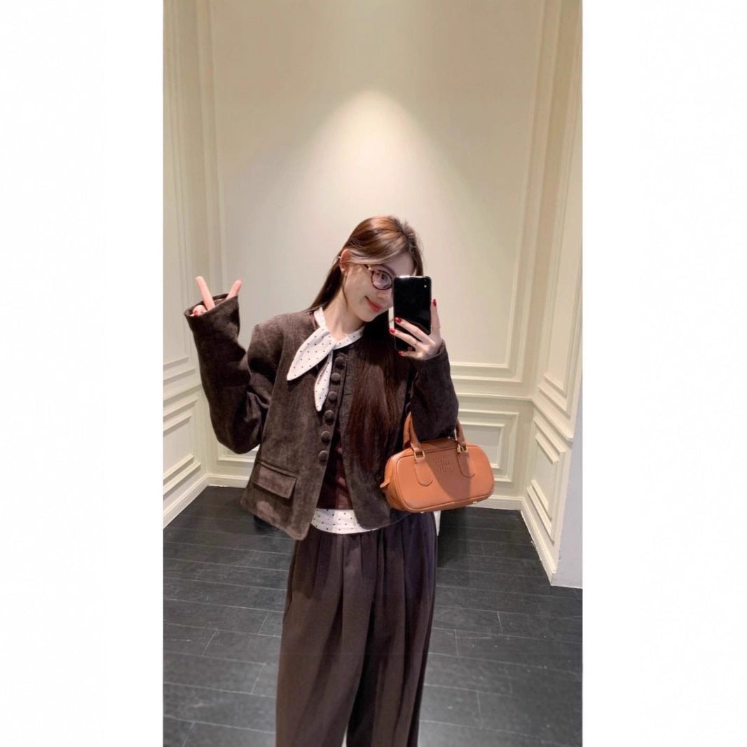 Chic Vintage Polka Dot Long Sleeve Top for Women, Slim Fit, Casual Style